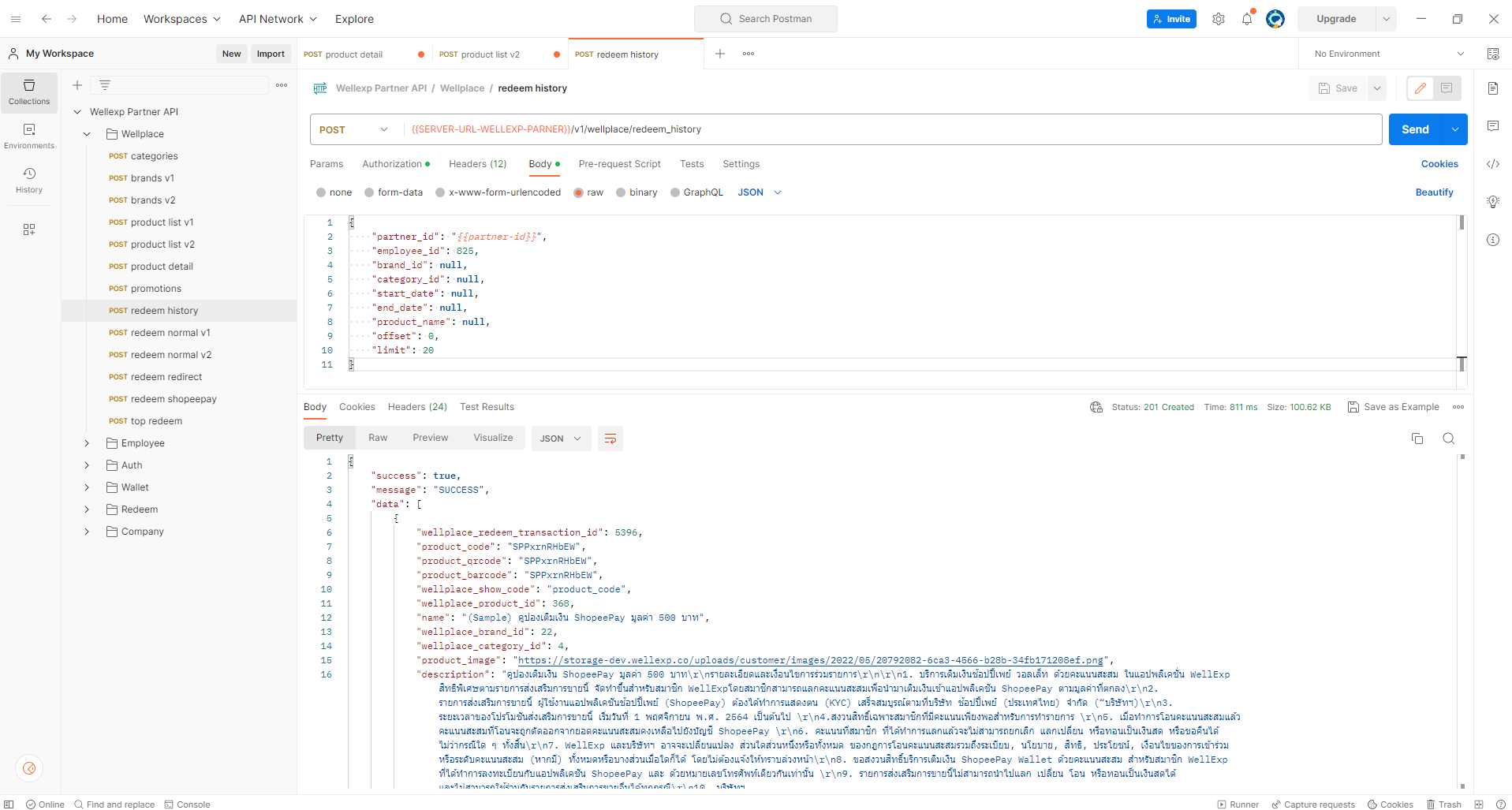 • นำข้อมูล id ของพนักงานที่ต้องการดูประวัติ มาใส่ในส่วนของ "employee\_id"\